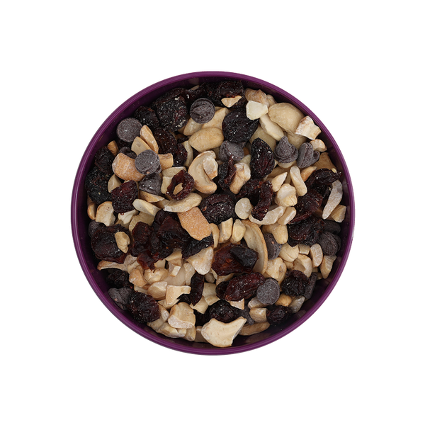 This mix is simple and sweet. Sweet-tart cranberries, mixed with lightly salted cashew pieces rounded off with our sweet dark chocolate chips.Scored Product Attributes