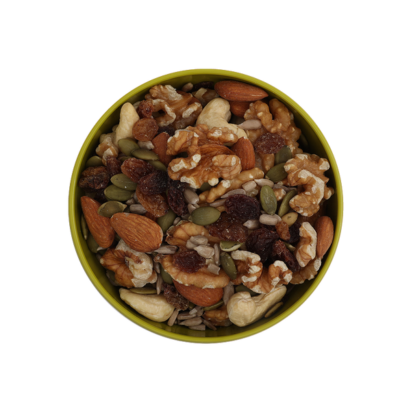 This certified-organic healthy trail mix made by us is a superb blend of cashews, almonds, walnuts, sunflower seeds, pumpkin seeds, and plump juicy raisins.Scored Product Attributes