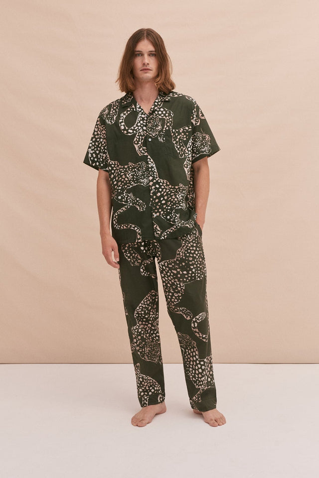 Desmond & Dempsey Mens Cuban Long Pyjama Set The Jag Print Green