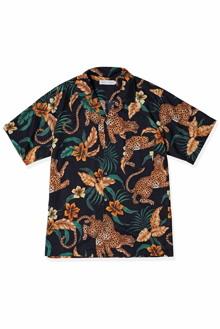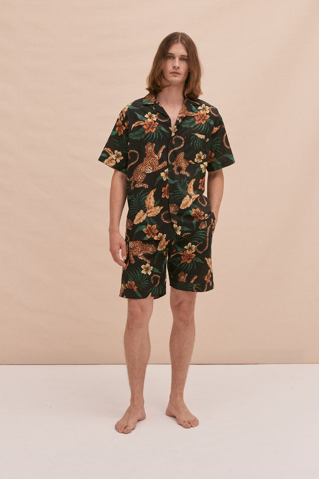 Desmond & Dempsey Men's Cuban Pyjama Shirt Soleia Print Black/Yellow