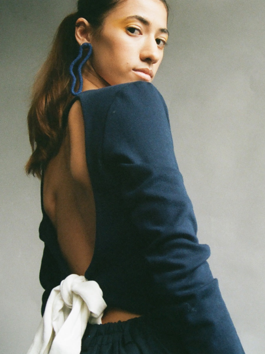Fanfare Label Organic Cotton Navy Backless Jumper With White Bow
